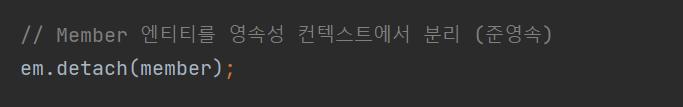 영속성 컨텍스트에 저장되었다가 분리된 상태